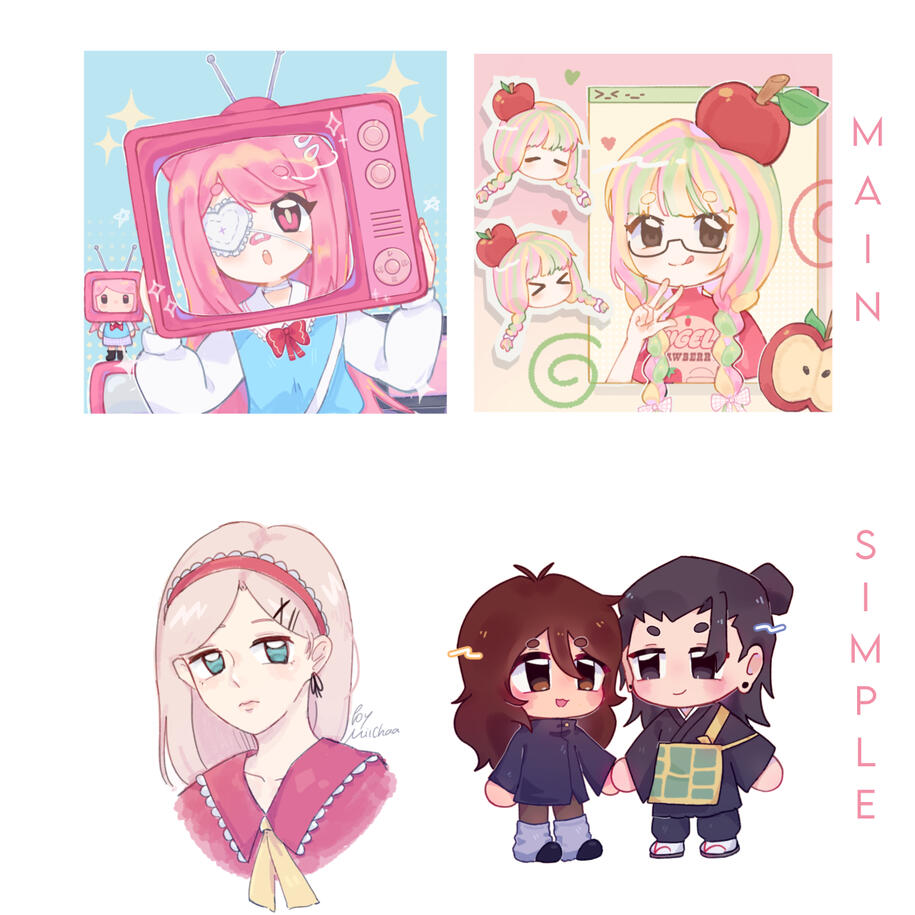 ✧ Fullbody Chibi : $5 ✧ Shoulder Up Portrait : $10- - - - - - - - - - - - - - - Additional Prices : ✧ Additional Character : same price ✧ Complex Character Designs : $2 - $5 ✧ Props, Pets, Etc. : $1 - $5